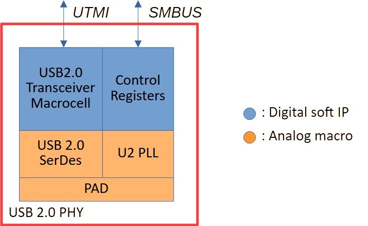 , PLL, digital core, and ESD I/O pads in PHY hard macro